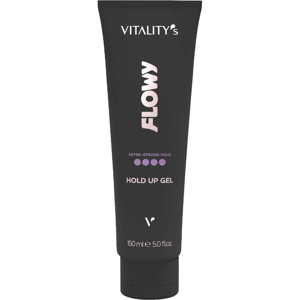 Prélever une petite quantité de Gel de Fixation Extra Forte Hold Up Flowy de Vitality's dans la paume des mains.