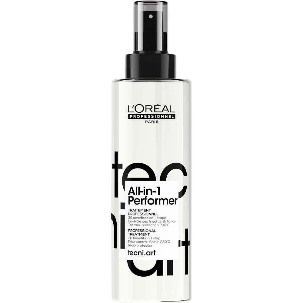 Le All In One Performer Spray Tecni.art de L’Oréal Professionnel est un spray tout-en-un sans rinçage conçu pour simplifier la routine des coiffeurs exigeants. Il offre 30 bienfaits en une seule étape. Il combine soin, préparation et finition pour des cheveux instantanément plus sains, protégés et faciles à coiffer.